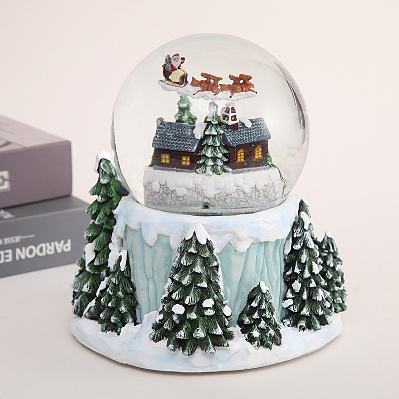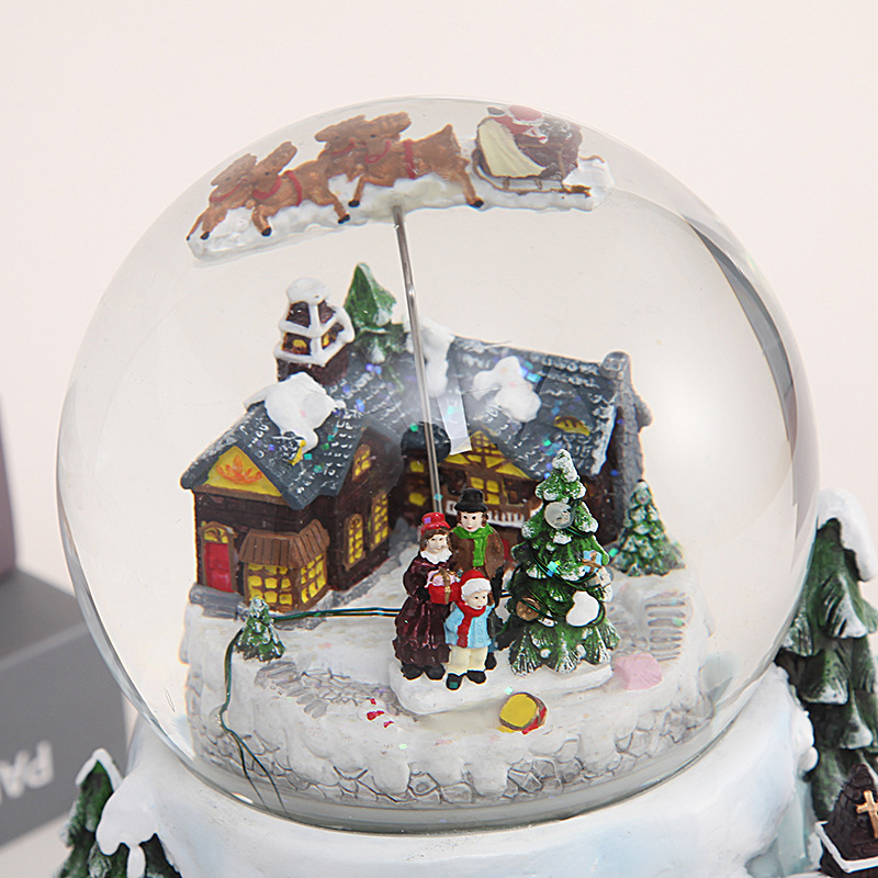 This transparent glass water ball ornament combines the charm of a classic music box with a snowflake crystal ball, and is a resin craft designed specifically for the Christmas season. It can not only be used as a holiday decoration, but also as an exquisite gift that can convey emotions and create an atmosphere. Whether for personal use or as a gift, this crystal ball can add a touch of magical color to your living space.