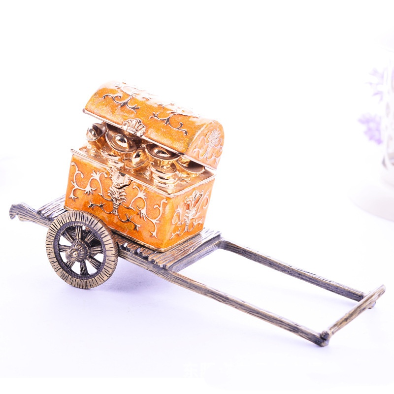 This ornament cleverly combines the two: a strong golden bull vigorously pulling a treasure chest filled with ingots, coins, and gems, full of dynamics, symbolizing “hard work to get rich, abundant wealth”.