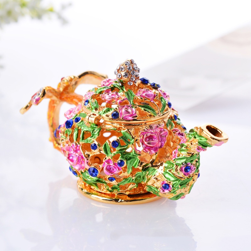 Whether you are looking for an exquisite item that can enhance your quality of life or as a purchaser looking for competitive specialty products in the market, this hollowed out enamel teapot jewelry box is the right choice. It perfectly combines practical functions with artistic value, meeting daily storage needs and becoming a highlight of home decoration.