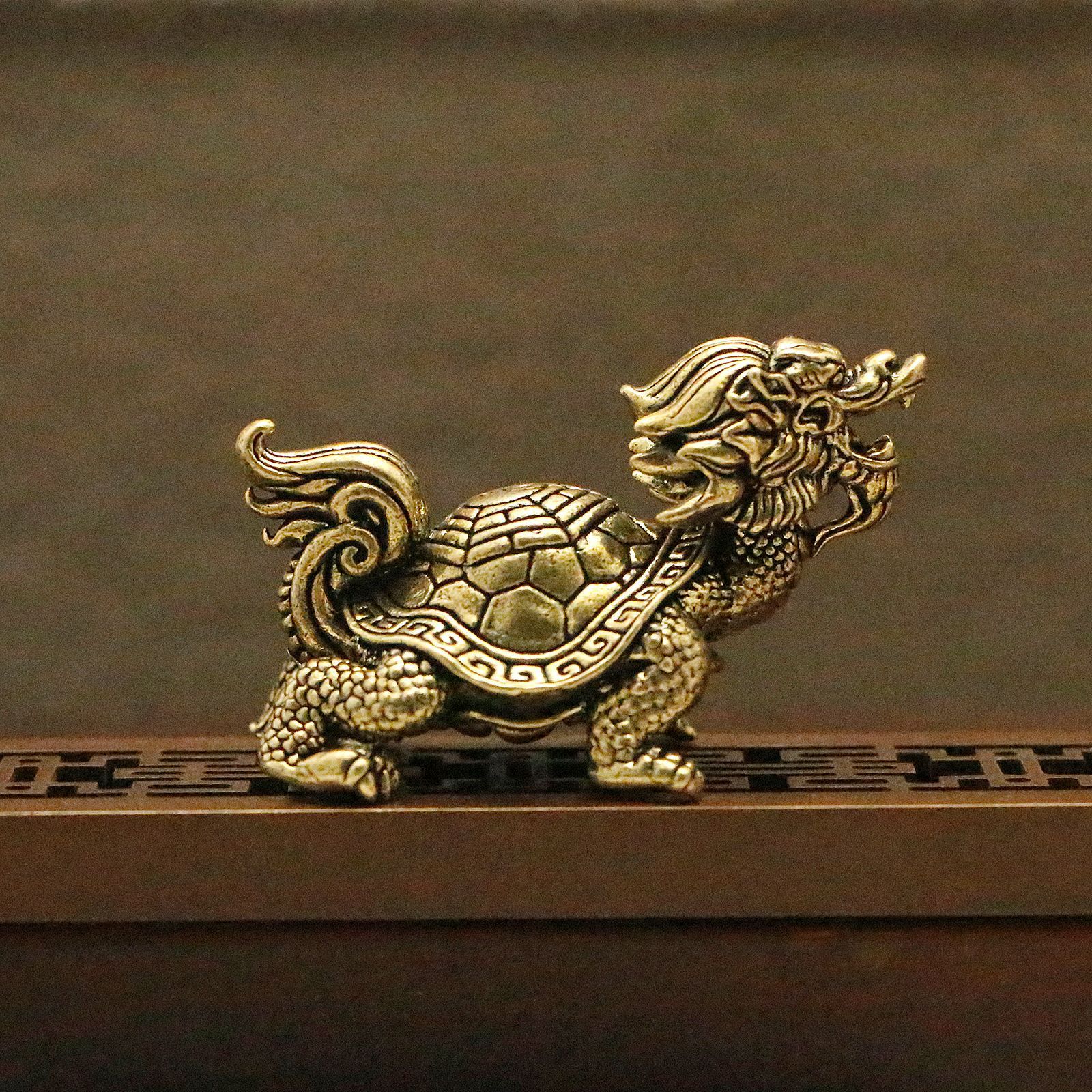 Product FAQ Q: This dragon turtle looks very weighty. As a foreign trade gift, what practical problems can it help customers solve? -Customer Requirement 1: “I need a high-end business gift that combines Chinese cultural characteristics and is not just an ordinary commodity Answer: I completely understand. This product first excels in the “solid” and “old object” craftsmanship. It is not a cheap hollow thin skin product, it feels heavy in the hand and has a sense of grade. The eight trigrams pattern on the back and the retro patina effect make it look like an “old object” with stories and culture. When given to foreign customers, it represents a heavy Eastern etiquette. -Customer Requirement 2: “I want to place some auspicious ornaments in the office or home, but I’m afraid they might be too tacky Answer: The dragon turtle is a auspicious beast, known for its reputation of “returning home in glory”, symbolizing returning home in glory and achieving success and fame. With the blessing of the Eight Trigrams element, there is also an emphasis on guarding homes and dispelling evil spirits. The vintage craftsmanship of this ornament makes it look more like a timeless antique, elegant and understated. When placed in a study or tea room, it not only has a good color scheme but also retains its cultural and artistic charm. -Customer Requirement 3: “As a tea pet, can it really be nourished with tea water? Will it rust and discolor quickly Answer: This is precisely the charm of brass. When you usually drink tea, you can pour tea soup over this dragon turtle. Due to its solid and refined copper, it not only does not rust, but over time, it gradually forms a warm and transparent “patina” under the nourishment of tea, and its color becomes more profound and antique, truly nurturing a unique and exclusive “old object” that belongs only to you.